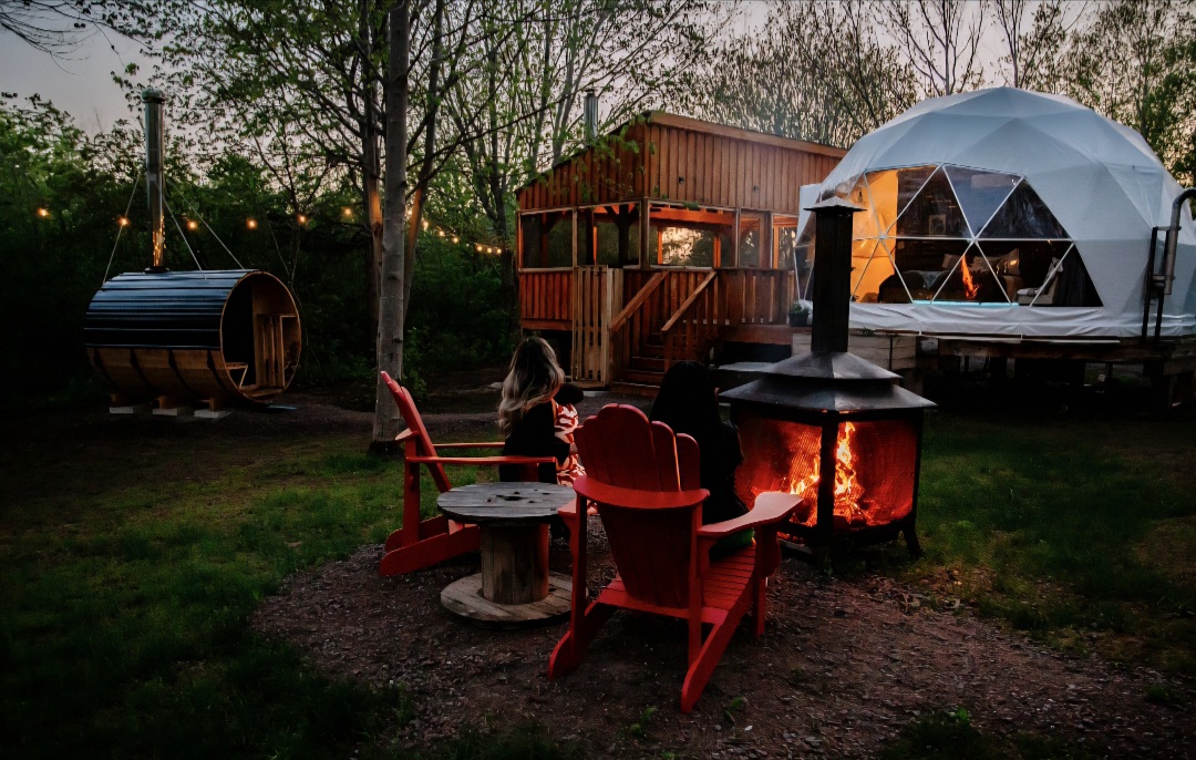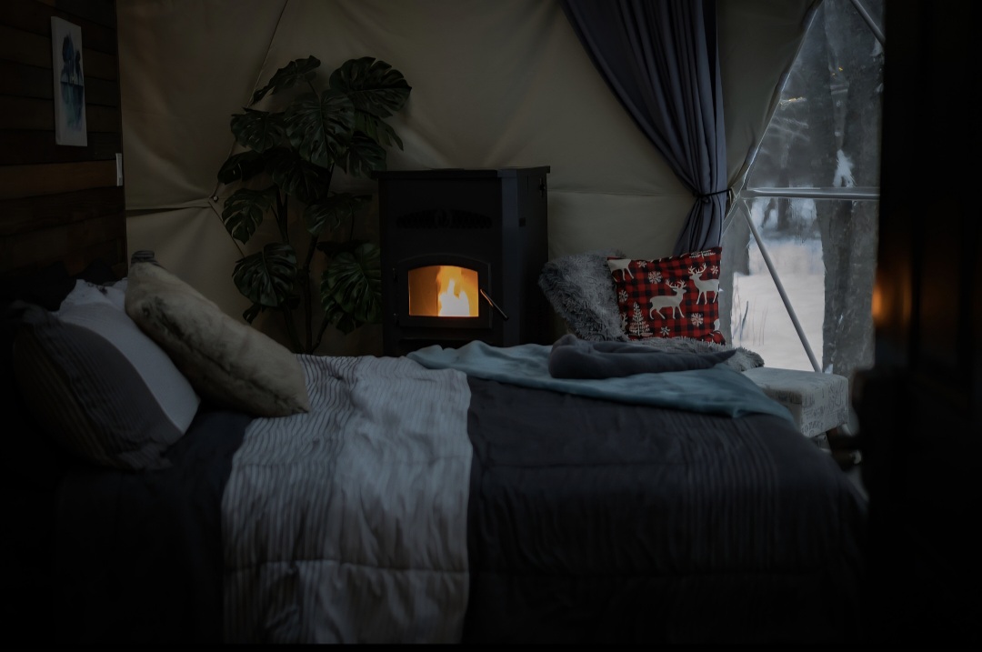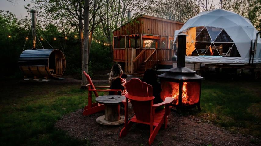East Coast Hideaway is a place to enjoy nature, the perfect escape from the city but still not far from restaurants and attractions. Come enjoy a private stargazer dome surrounded by beautiful maple trees, located on a large 30-acres property. Getaways can accommodate 2 adults and are open year-round. You will have your own equipped kitchenette, 3-piece bathroom, wood-fired hot tub, sauna, private screened-in gazebo, fire pit, table and more! ATV and snowmobile friendly property.