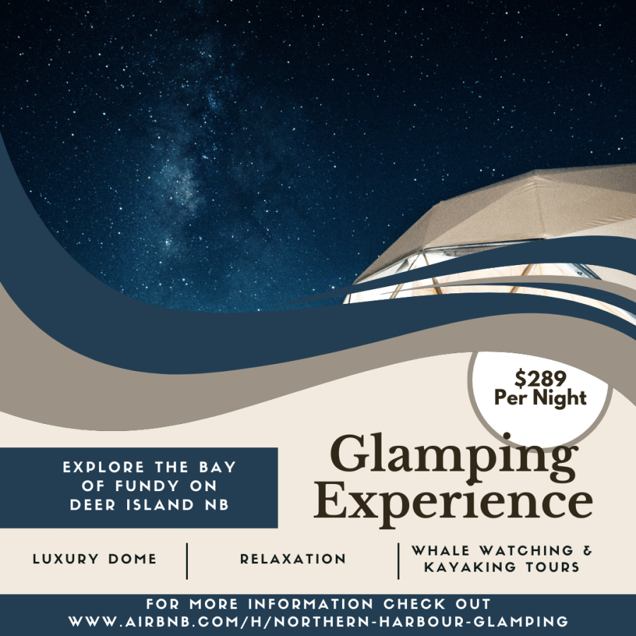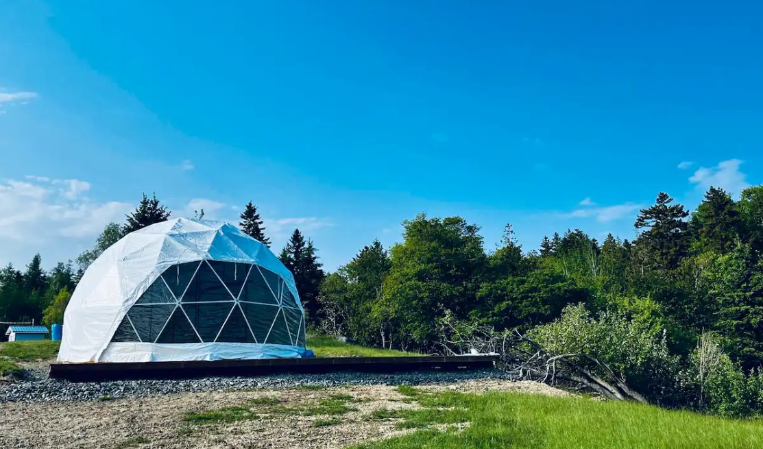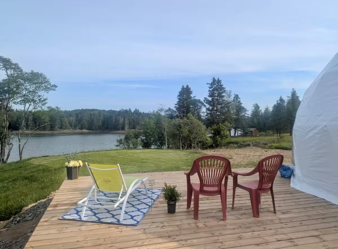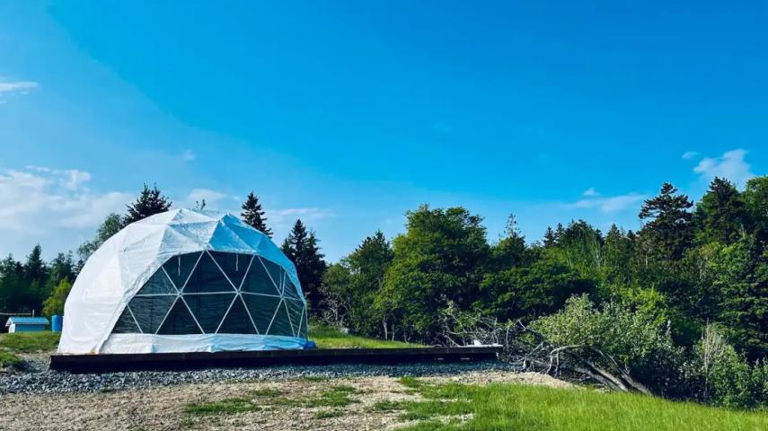 Experience oceanfront glamping in a cozy geodesic dome on Deer Island, NB. Nestled steps from the Bay of Fundy, this unique stay offers panoramic sea views, a comfy bed, full bathroom and all the modern commodities. Enjoy sunsets, stargazing, and the soothing sound of waves—perfect for a peaceful getaway.